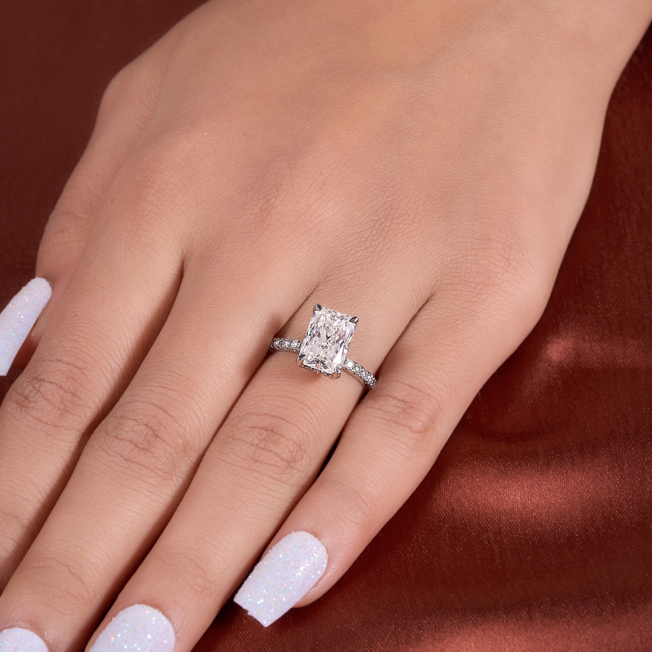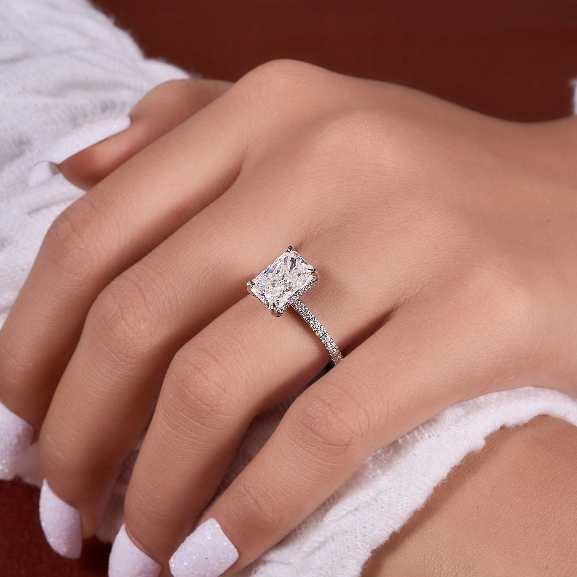 Crushed Ice 3.60 Ct Radiant Cut Lab Grown Diamond Ring