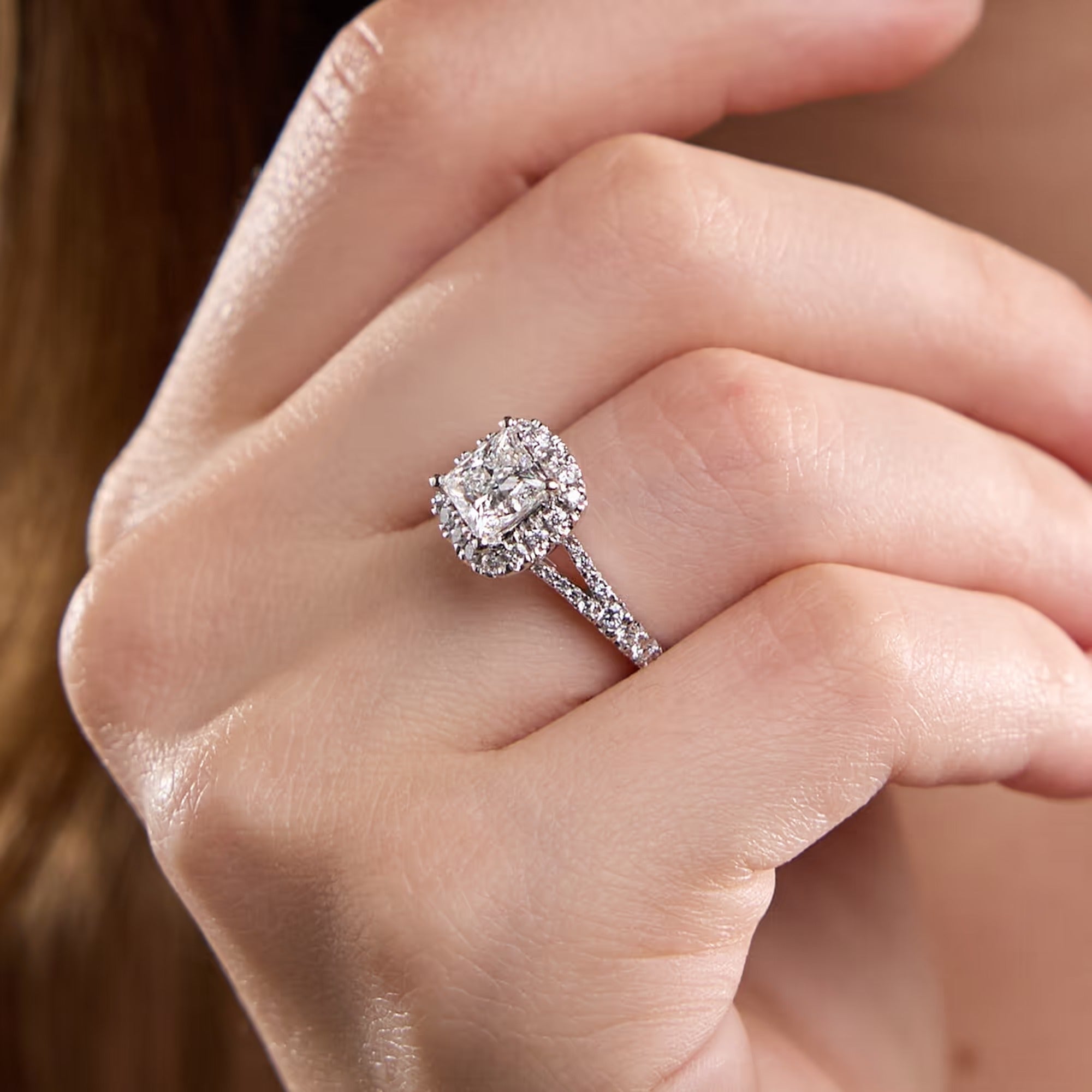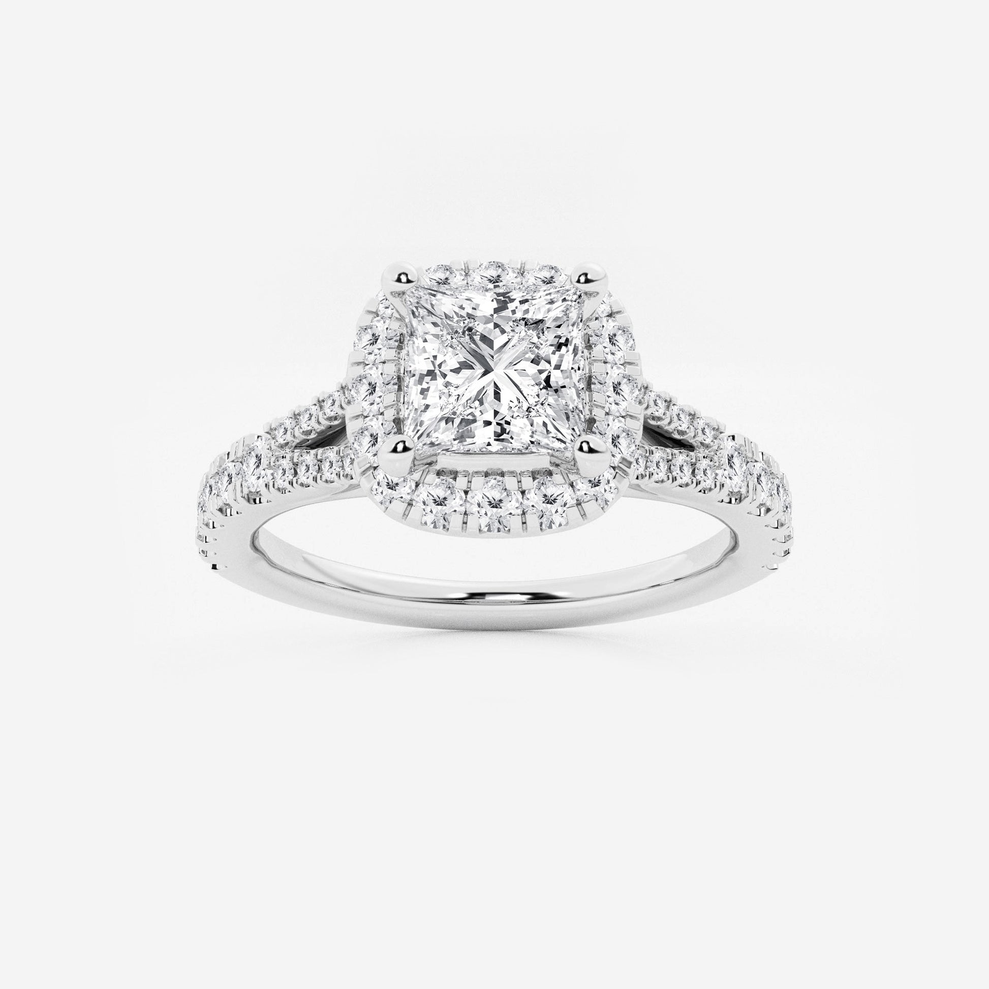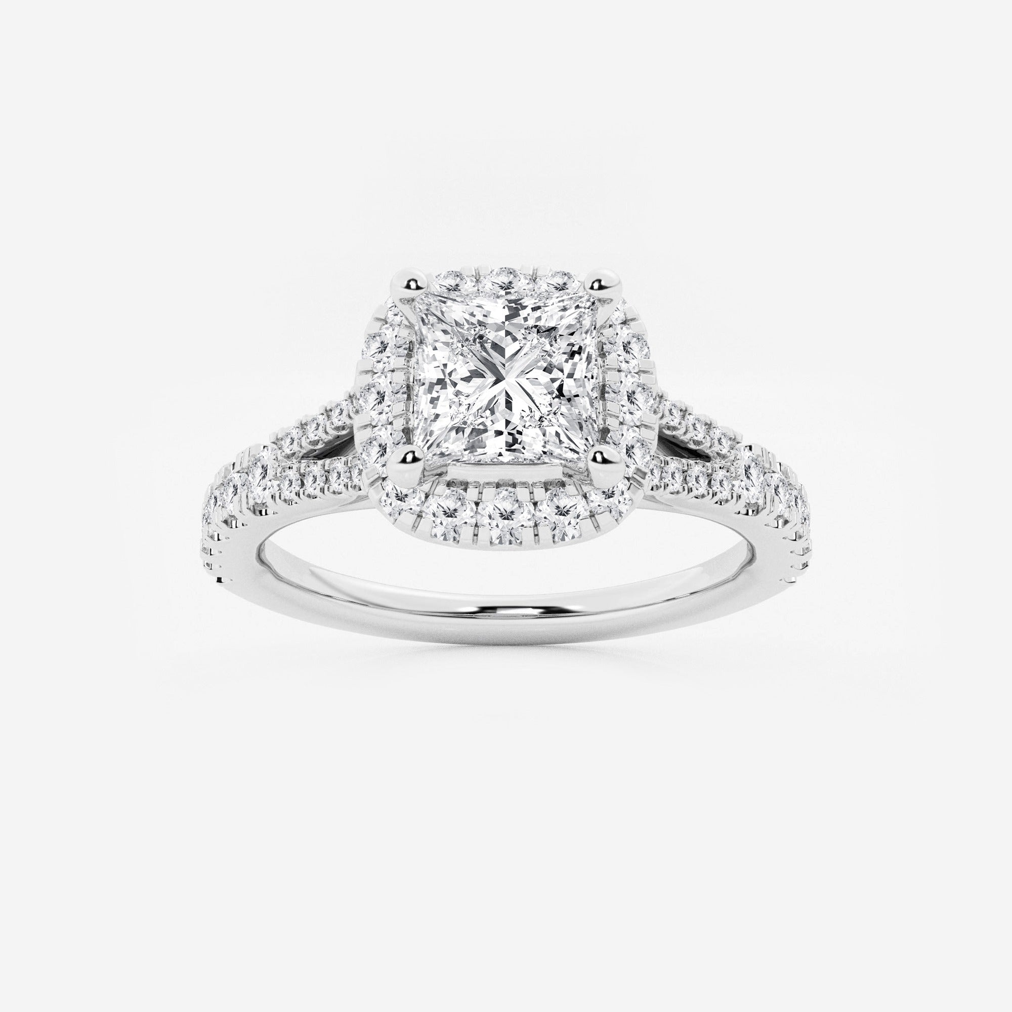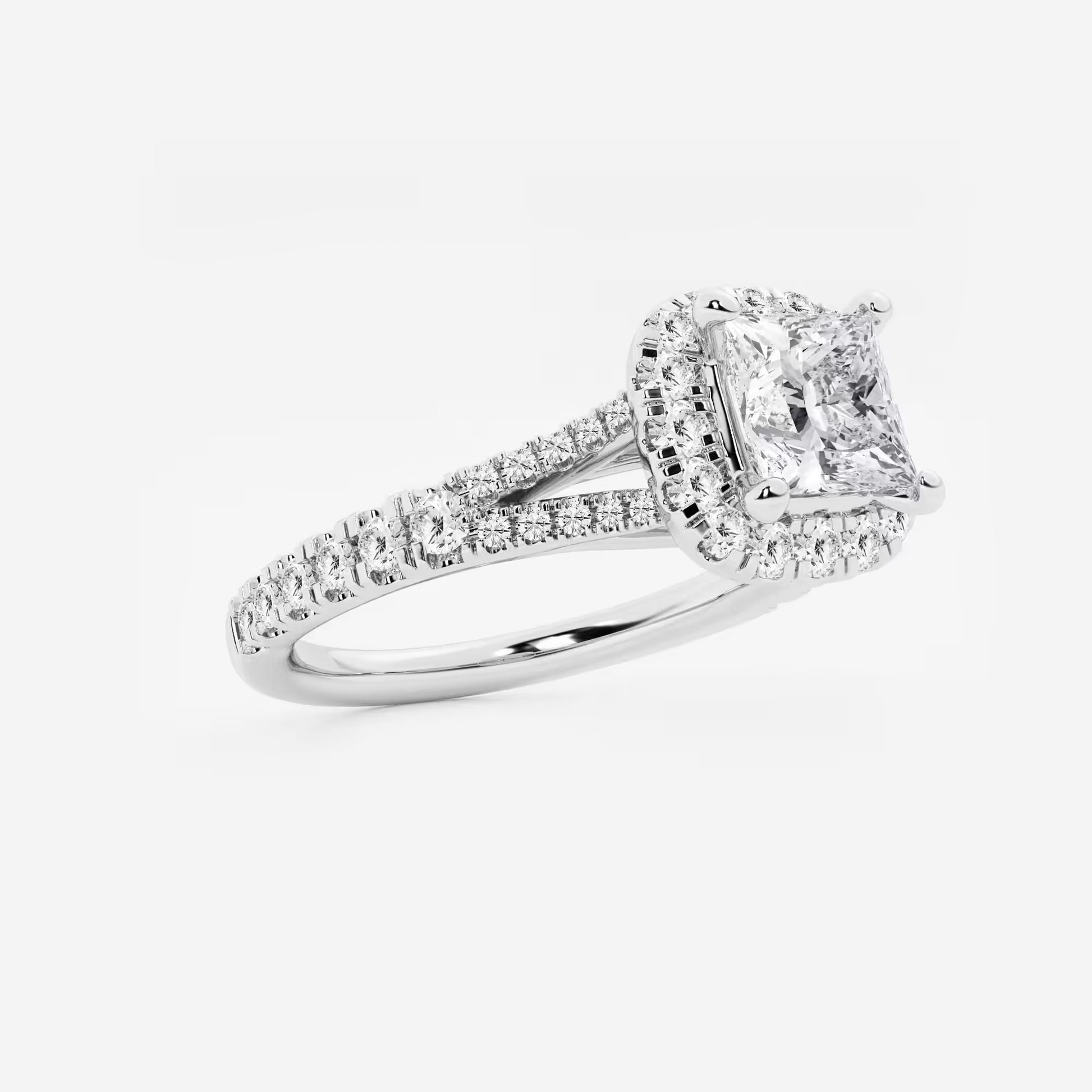 HB1202469 Shown with a 1 carat center diamond. Please click DETAILS below to see the diamond details about this ring. Try it on Nirvana 1 1/5 ctw Princess Lab Grown Diamond Split Shank Halo Engagement Ring