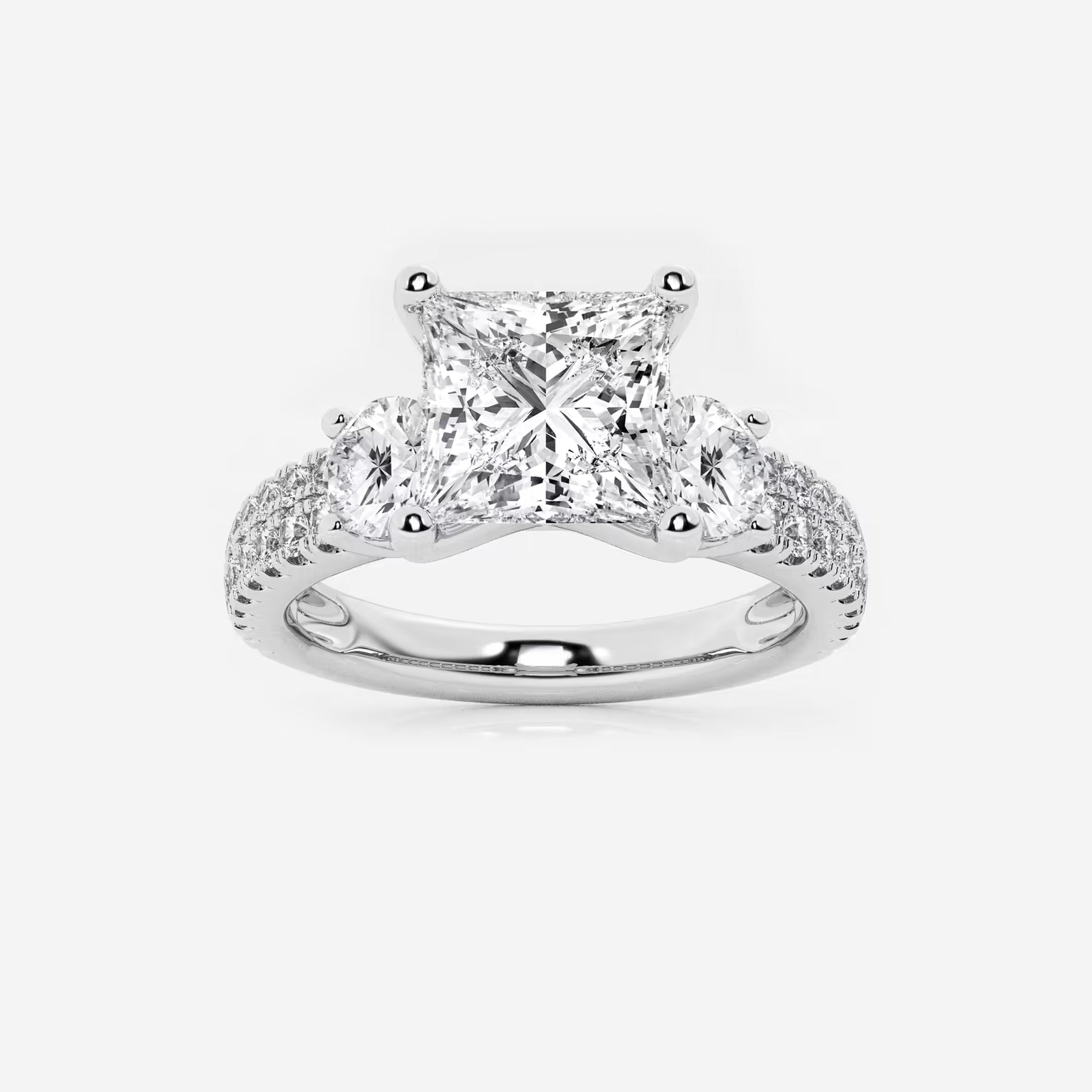 Marbella 1 1/2 ctw Princess Lab Grown Diamond Engagement Ring with Double Row Side Accents