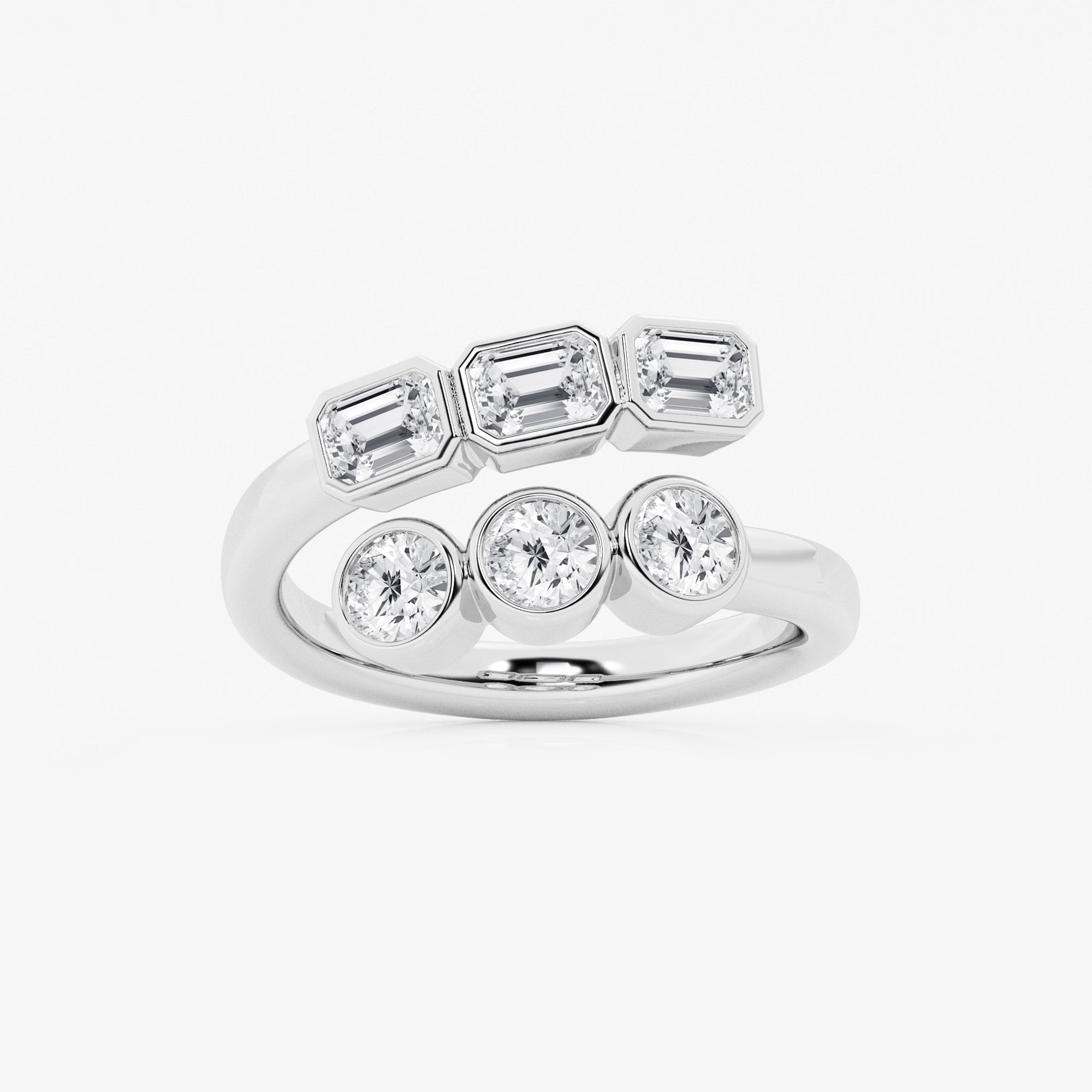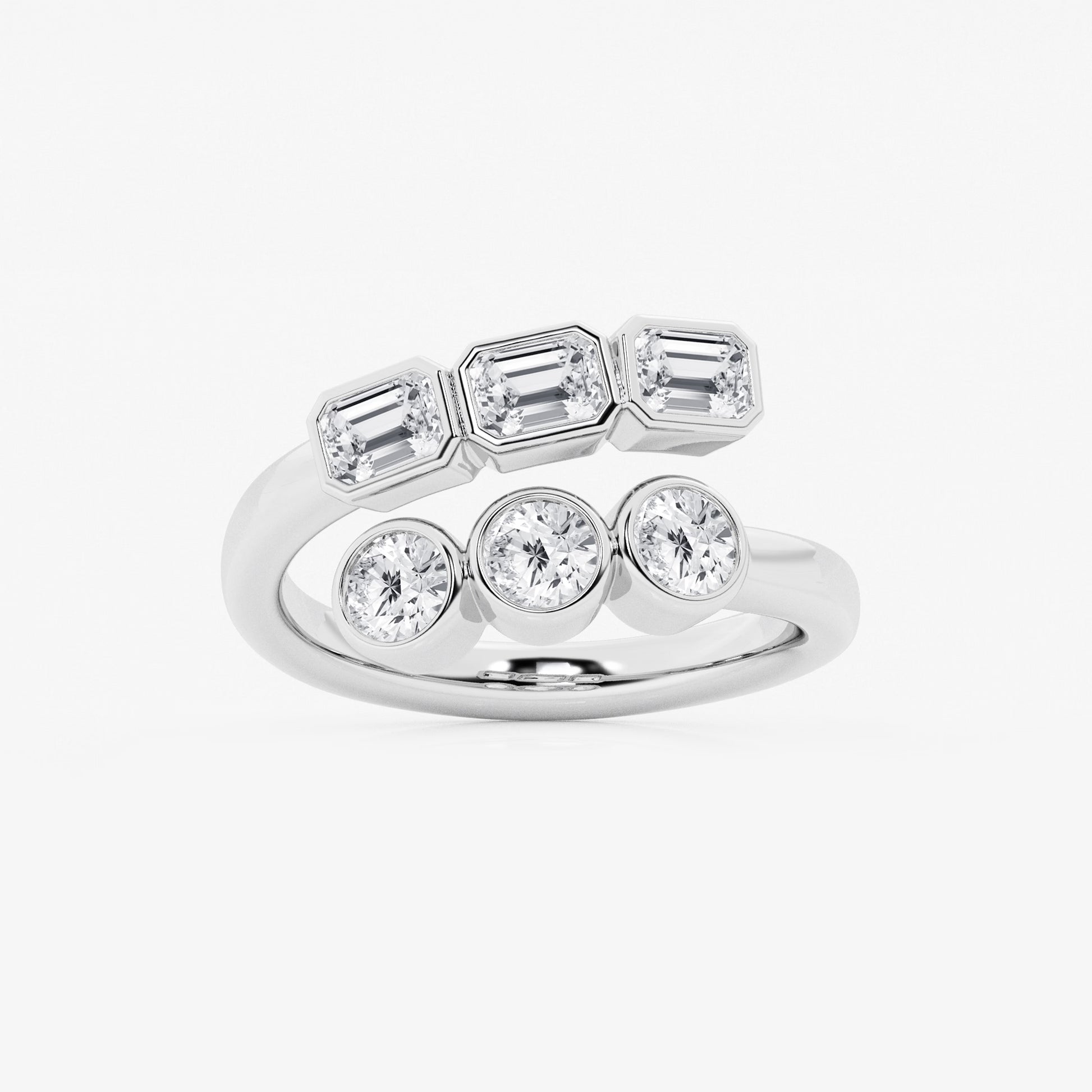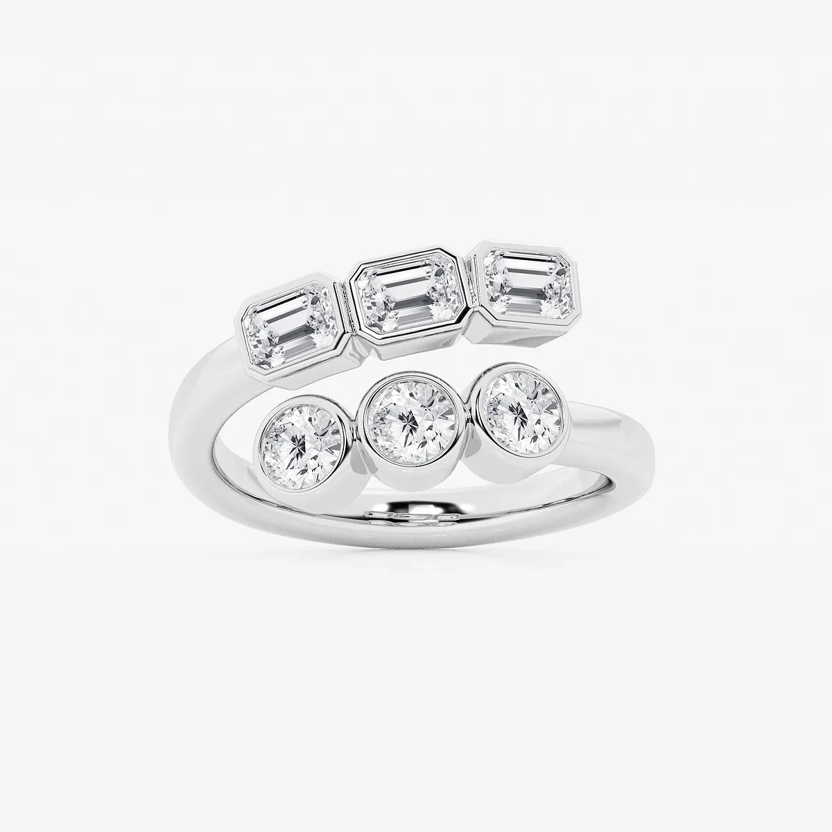 Oud 1 1/2 ctw Round and Emerald Lab Grown Diamond Bezel Bypass Ring