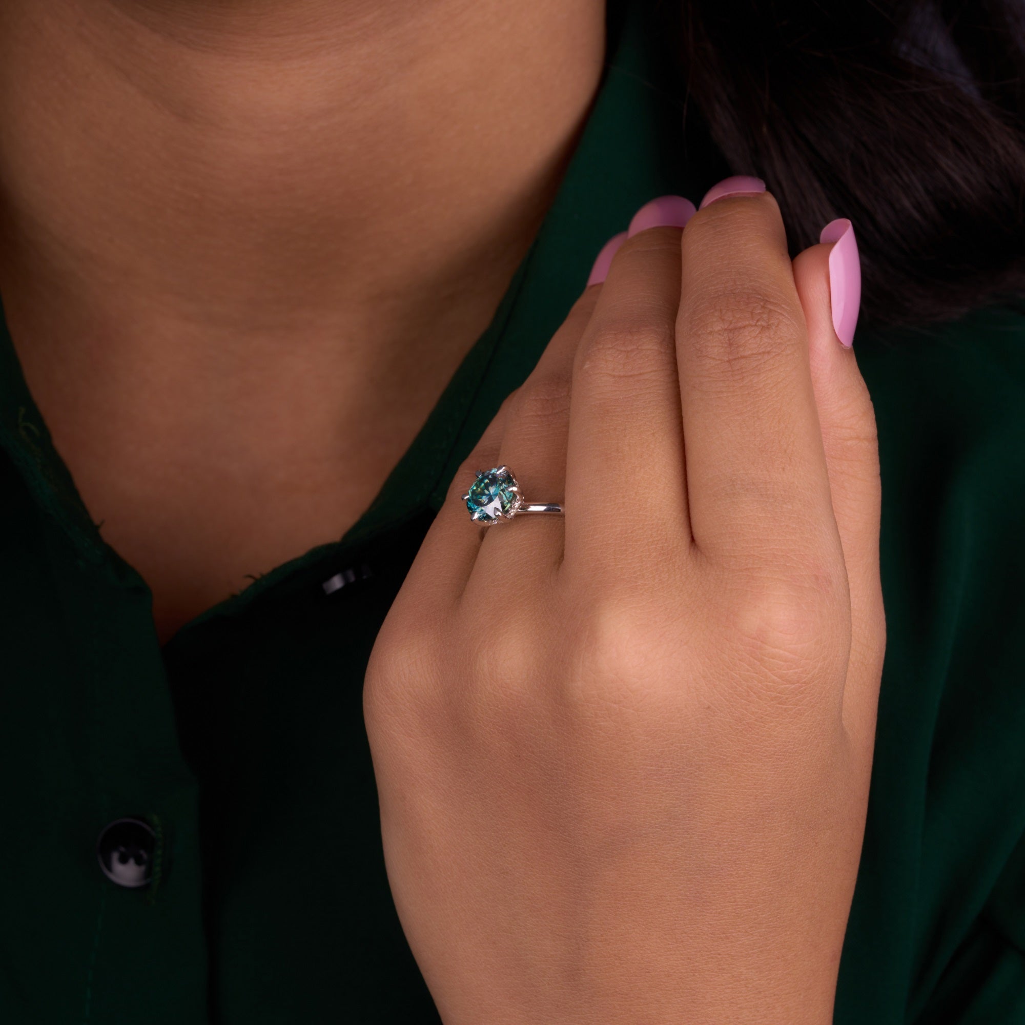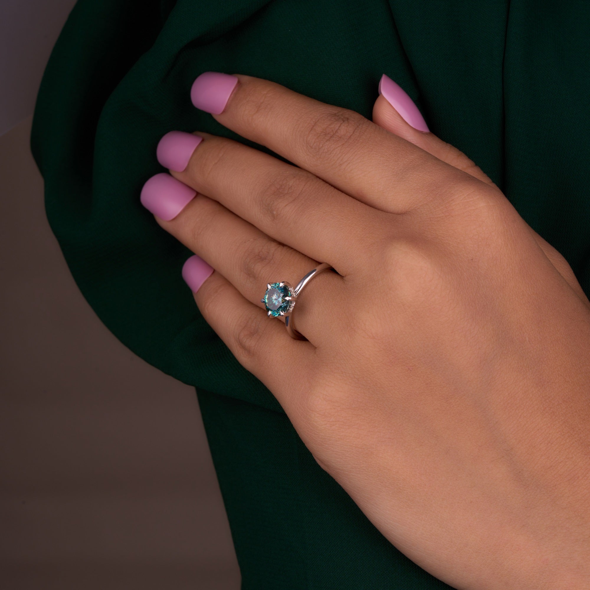 Portuguese Cut 2.25 Ct Blue Green Lab Grown Diamond Ring