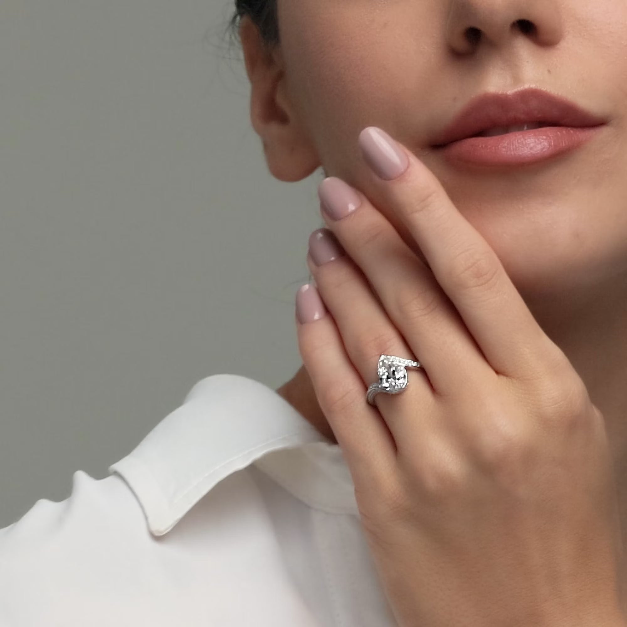 Rebecca 3 1/2 ctw Pear Lab Grown Diamond Twisted Bypass Side Stone Engagement Ring