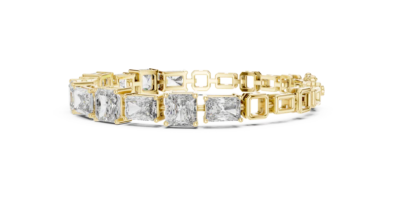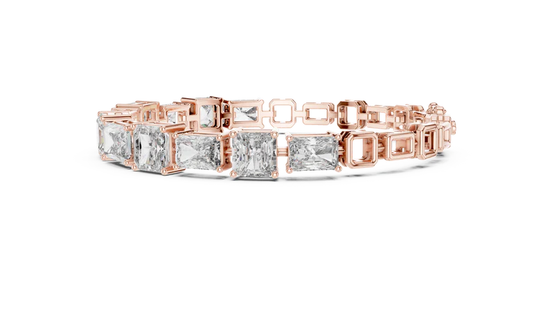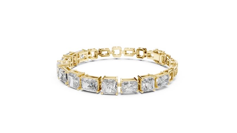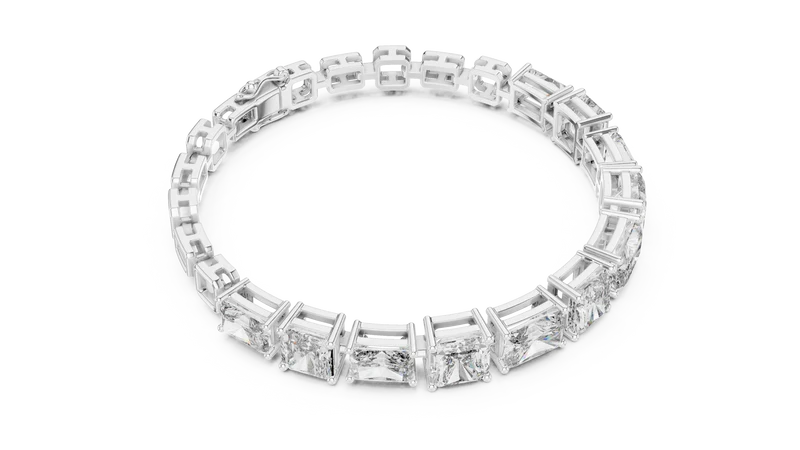 The bracelet’s design highlights a continuous line of stones crafted in a precise diamond shape. This structured approach adds depth and character, while the reflective surfaces ensure a captivating sparkle that draws the eye instantly.