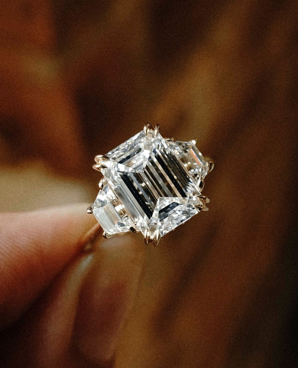 Three Stone 5 Ct Emerald Cut Lab Grown Diamond Engagement Ring