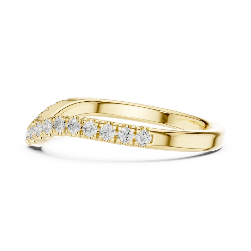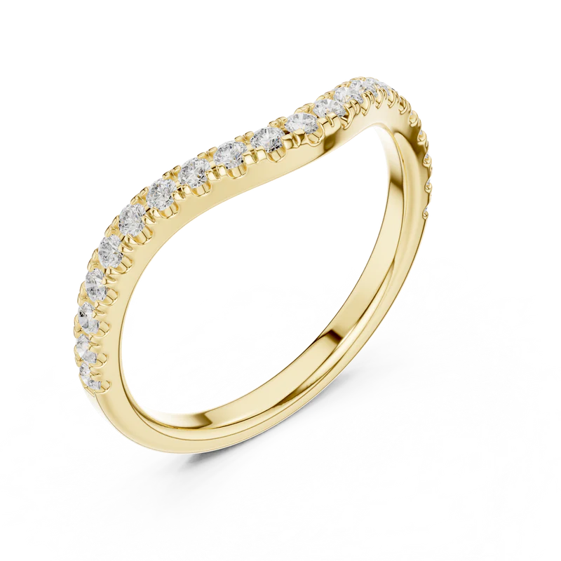 An exquisite ring lined with round brilliant-cut diamonds that exude infinite brilliance. The full pavé design radiates light from every direction, symbolizing unending love, grace, and refined luxury in one spectacular piece.